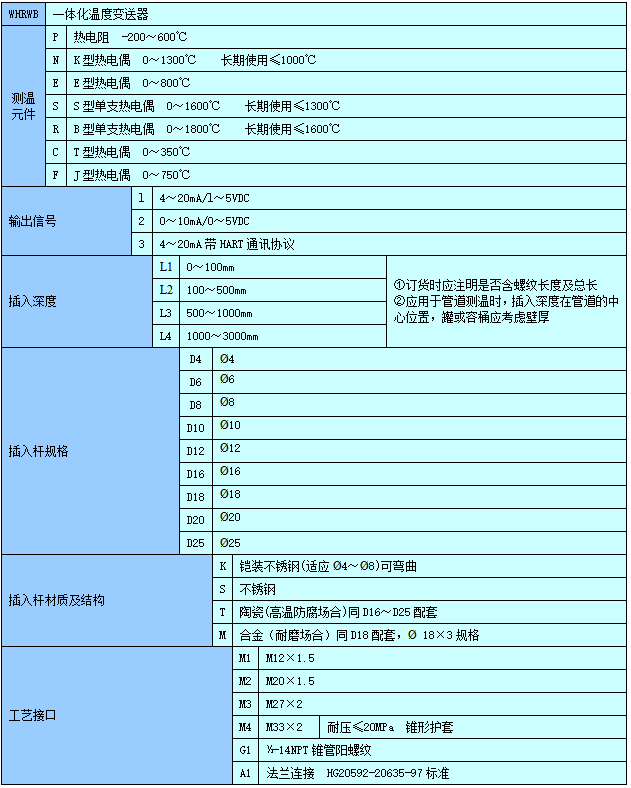 WHRWB系列一體化溫度變送器是一種超小型、性能優(yōu)良、高精度的新型測(cè)溫儀表。它具有體積小,重量輕、使用安裝方便的特點(diǎn),可直接安裝在一般工業(yè)熱電阻、熱電偶的接線盒內(nèi),與現(xiàn)場(chǎng)傳感元件構(gòu)成一體化結(jié)構(gòu)。這樣不僅節(jié)省了較為昂貴的補(bǔ)償導(dǎo)線和電纜,而且減小了信號(hào)傳遞失真和干擾,從而獲得了高精度的測(cè)量結(jié)果。