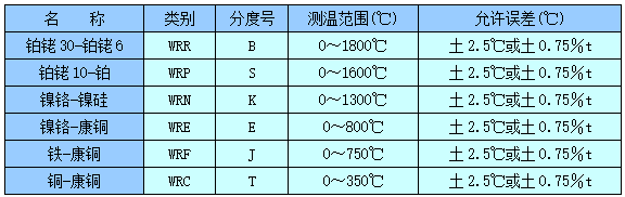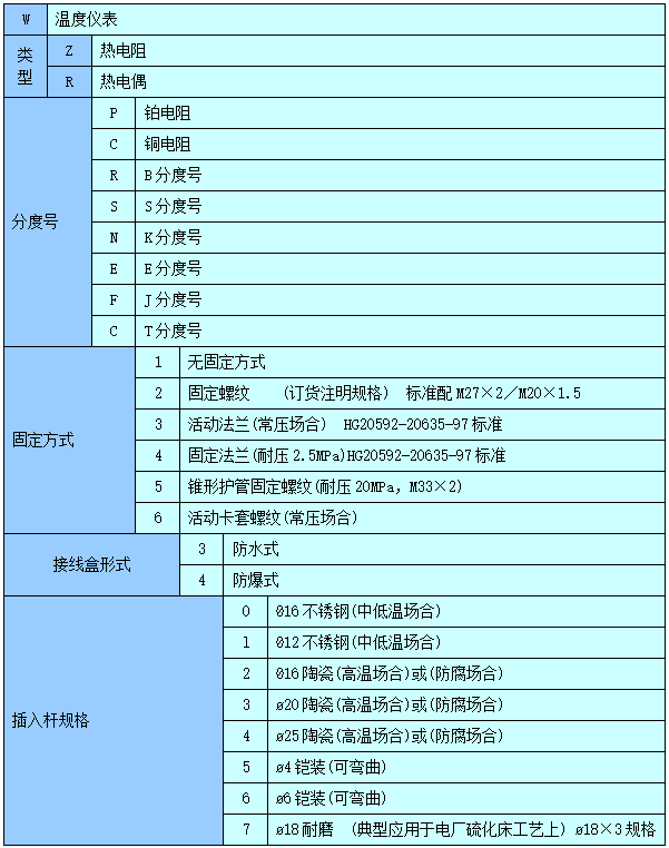 七、熱電阻/熱電偶型號(hào)規(guī)格表